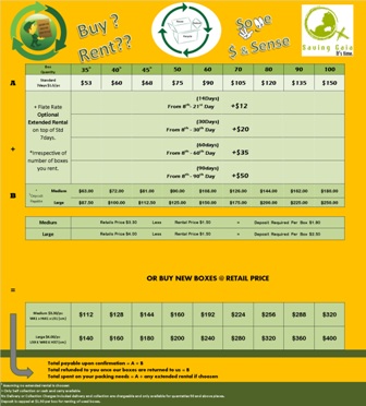Its Simple you will pay the same price as you would if you bought the boxes from us. Only difference is, at the end of your rental period we will refund your deposit portion for the boxes rented from us.